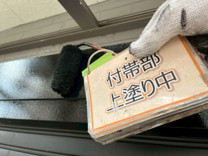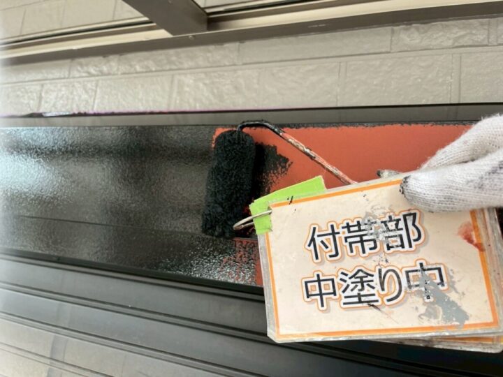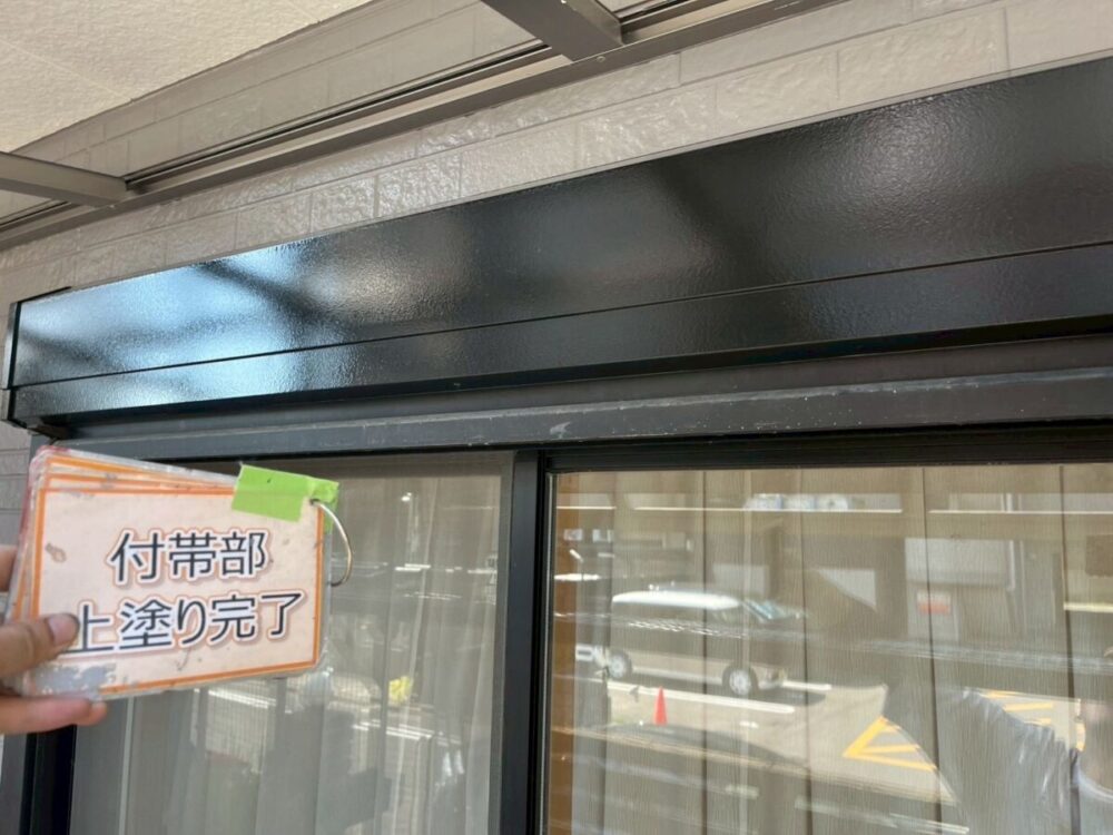 【上塗り】塗料を塗り重ね、色ムラを無くし美しく仕上げます。シャッターボックス塗装①