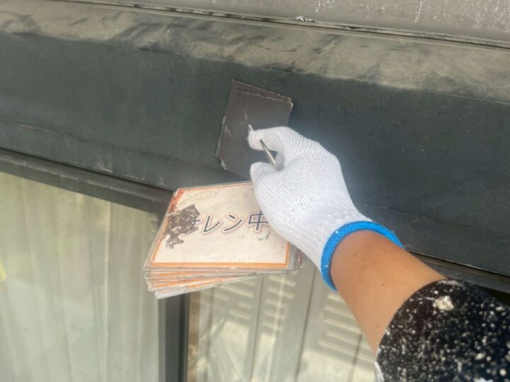 【ケレン】錆や汚れをきれいに落とし、平面を平滑に仕上げ塗料の密着率を上げる作業をします。シャッターボックス塗装②