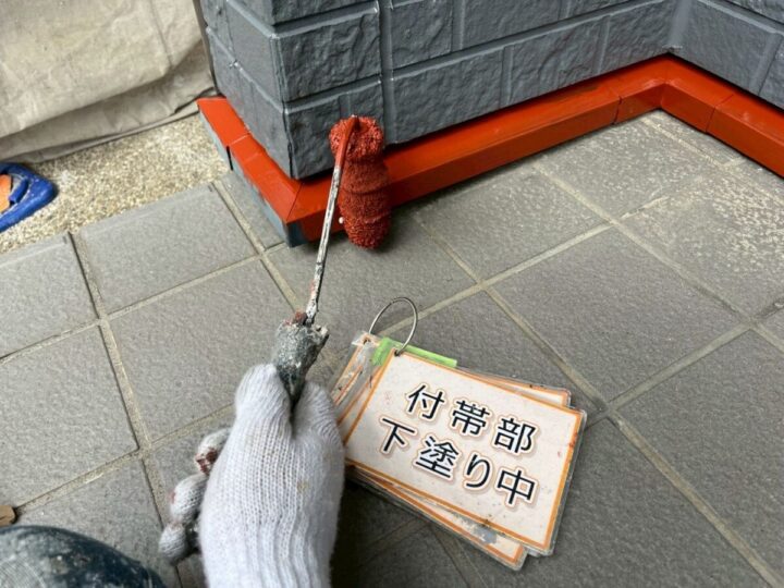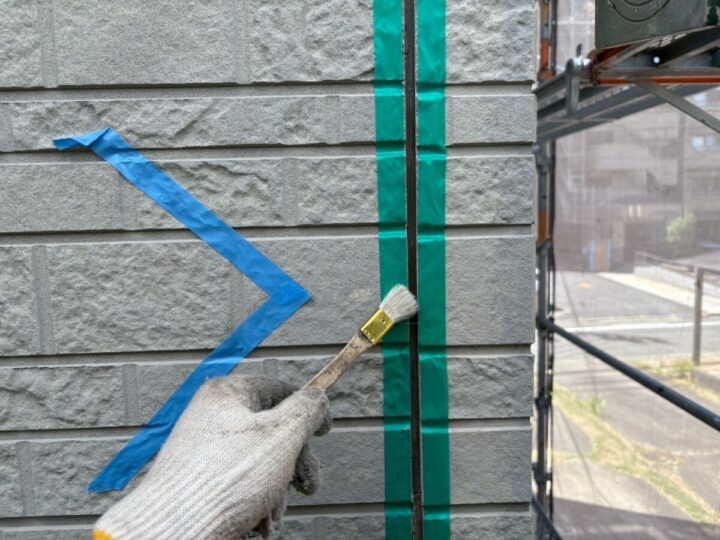 【プライマー】プライマーを塗布しシーリング材の密着性を高めます。シーリング工事③