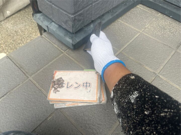 【撤去】経年により劣化したシーリング剤を撤去します。シーリング工事②