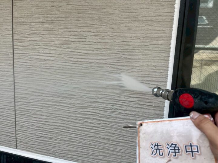 【洗浄】長年蓄積された頑固な汚れを隅々まで綺麗に洗浄していきます。シーリング工事①