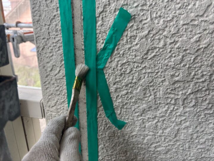 【プライマー】プライマーを塗布しシーリング材の密着性を高めます。シーリング工事②