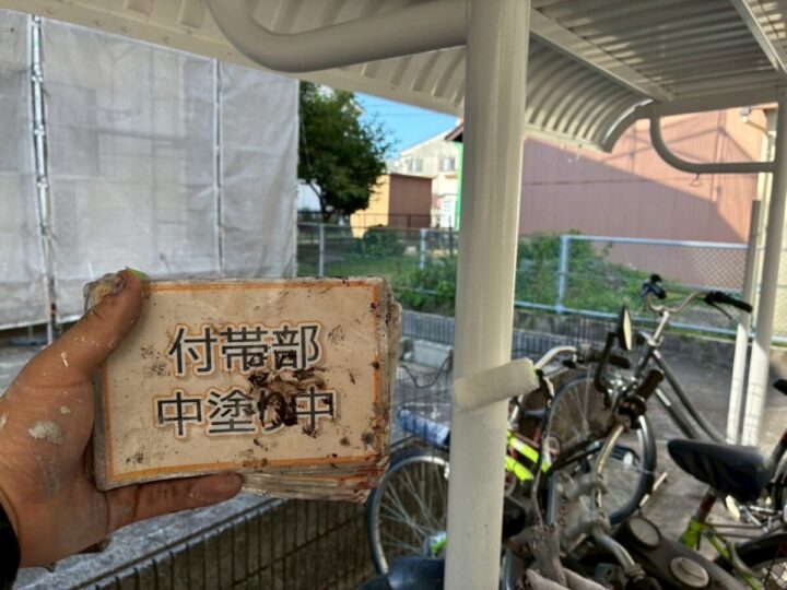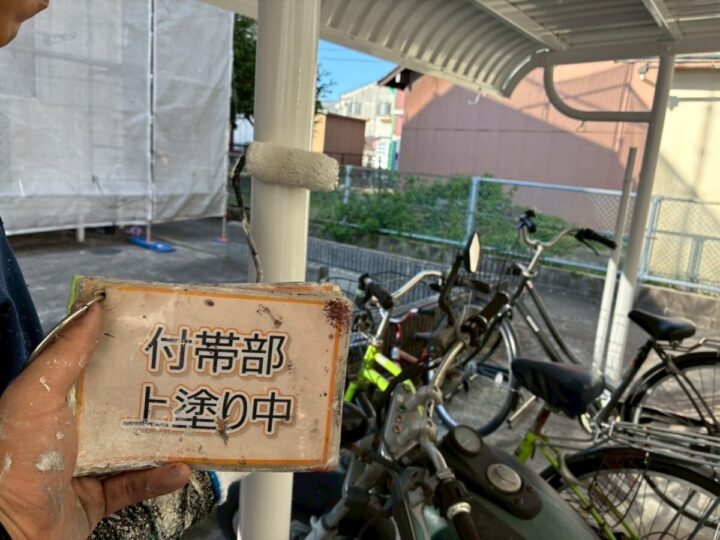 【中塗り】ご希望のカラーを塗装していきます。駐輪場塗装②