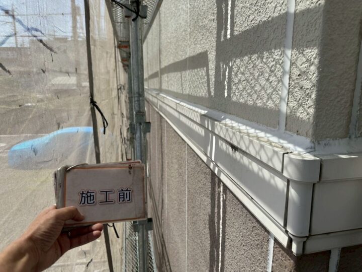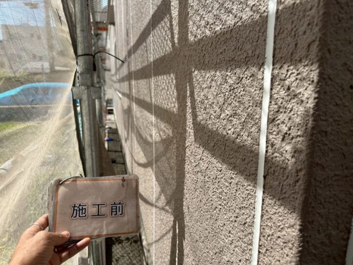 【洗浄】長年蓄積された頑固な汚れを隅々まで綺麗に洗浄していきます。シーリング工事①