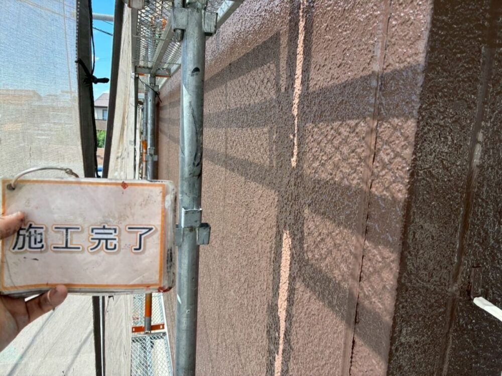【押さえ】ヘラで形を整え施工完了です。外壁塗装①