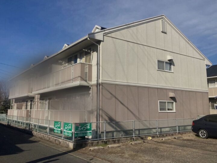 【上塗り】塗料を3回塗り重ねることで外壁の艶が増し、紫外線や雨水に強い耐久性のある外壁に仕上がります。駐輪場塗装①