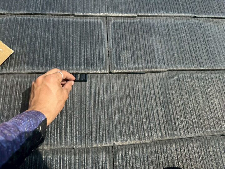 【縁切り】タスペーサーを挿入し雨水や湿気を逃がす出口を設けます。屋根塗装③