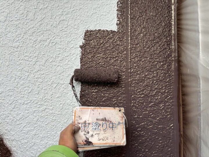 【中塗り】ご希望のカラーを塗装していきます。外壁塗装③