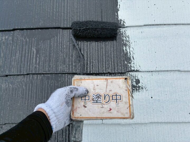 【中塗り】ご希望のカラーを塗装していきます。屋根塗装④