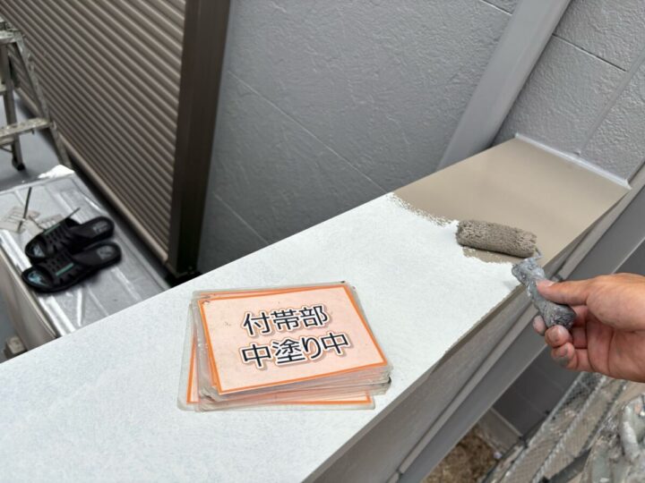 【中塗り】ご希望のカラーを塗装していきます。ベランダ笠木塗装④