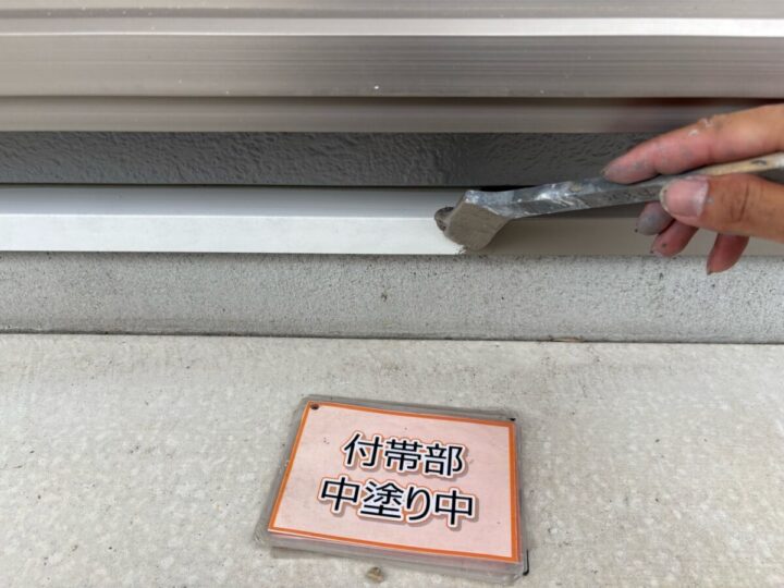 【下塗り】錆び止め塗料を塗布し、鉄部の錆び防止をします。水切り塗装③