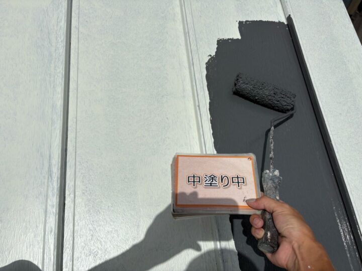 【中塗り】ご希望のカラーを塗装していきます。屋根塗装③
