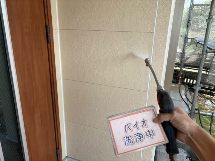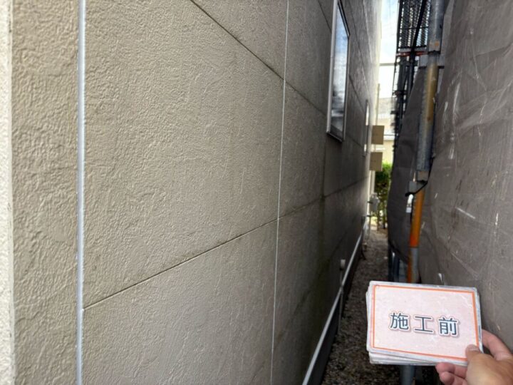 【洗浄】長年蓄積された頑固な汚れを隅々まで綺麗に洗浄していきます。シーリング工事①