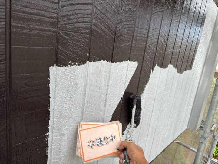 【中塗り】ご希望のカラーを塗装していきます。外壁塗装③