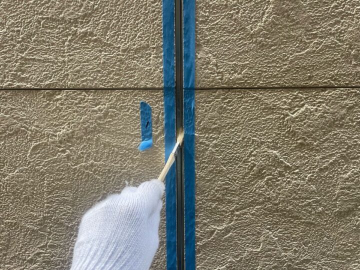 【プライマー】プライマーを塗布しシーリング材の密着性を高めます。シーリング工事③