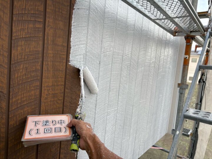 【下塗り】上塗り塗料の密着性を高める効果があります。外壁塗装②