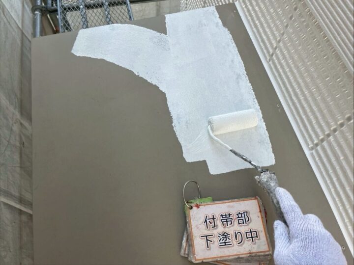 【下塗り】錆び止め塗料を塗布し、鉄部の錆び防止をします。
