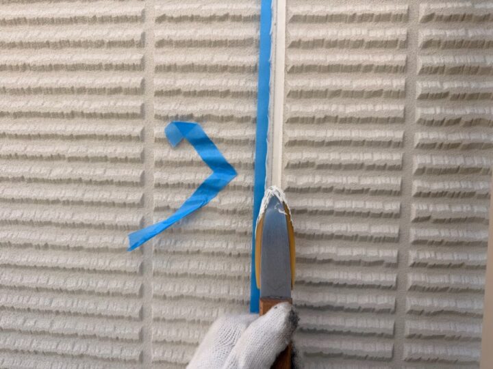 【撤去】経年により劣化したシーリング剤を撤去します。