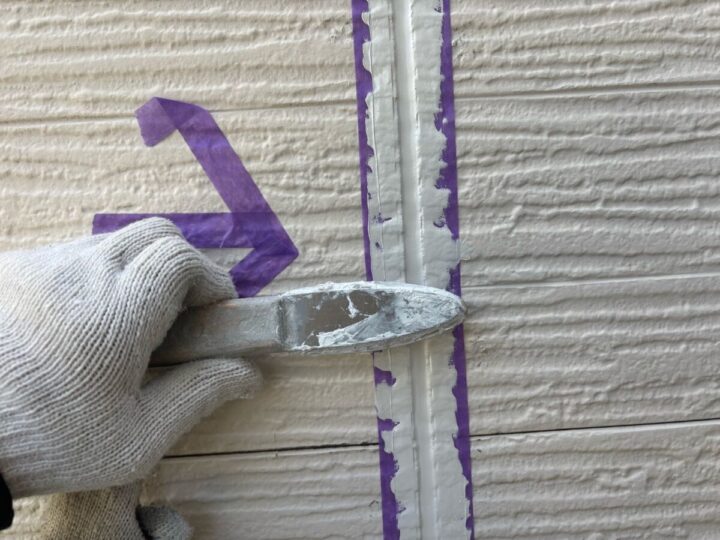 【撤去】経年により劣化したシーリング剤を撤去します。