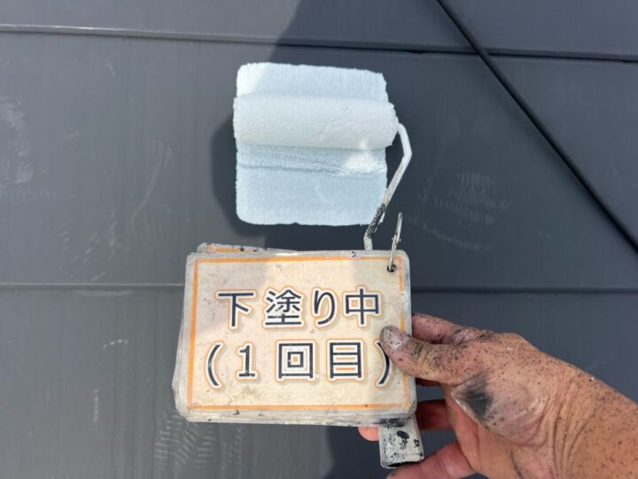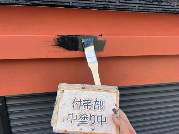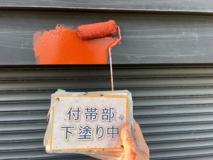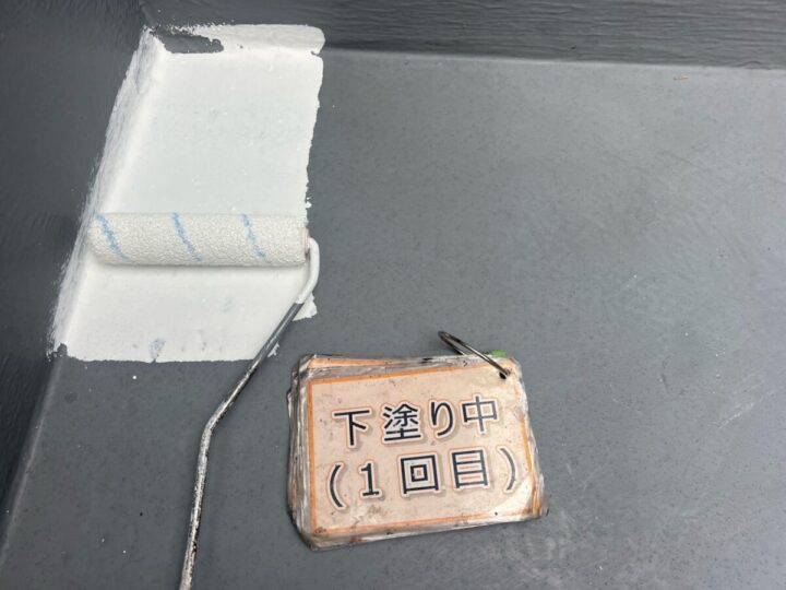 【下塗り】錆び止め塗料を塗布し、鉄部の錆び防止をします。