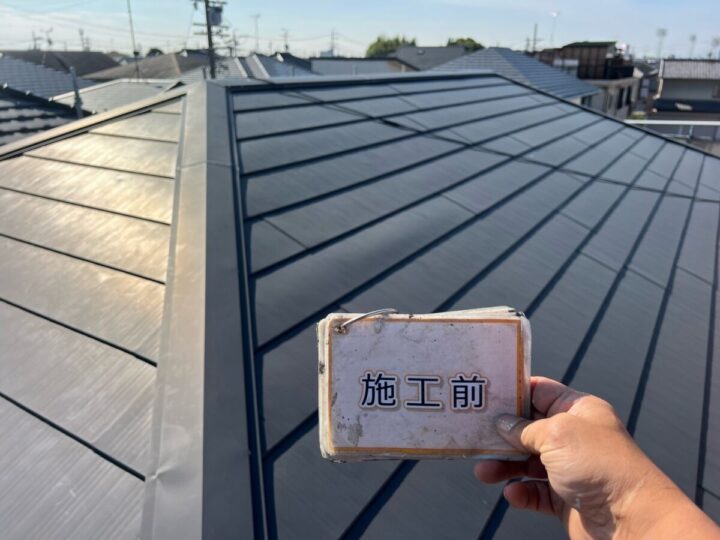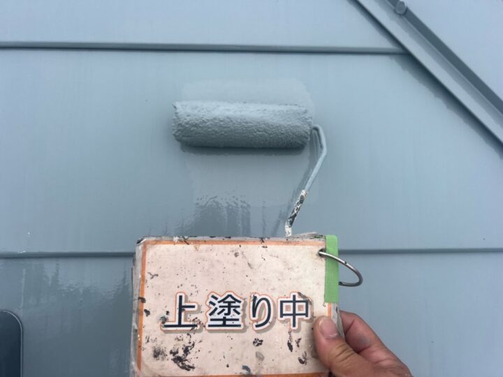 【上塗り】塗料を3回塗り重ねることで艶が増し、紫外線や雨水に強い耐久性のある屋根に仕上がります。