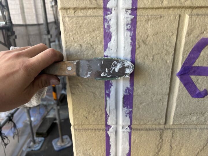 【撤去】経年により劣化したシーリング剤を撤去します。