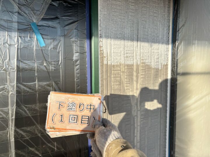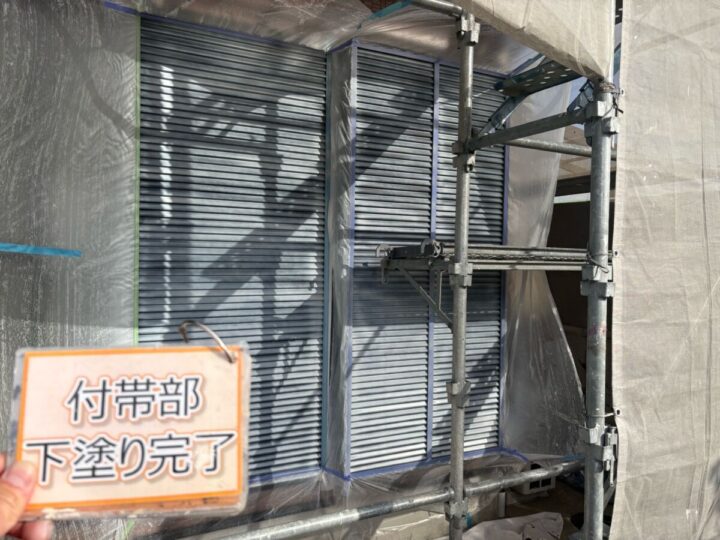 【下塗り】錆び止め塗料を塗布し、鉄部の錆び防止をします。