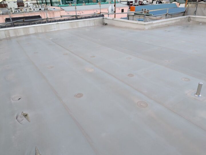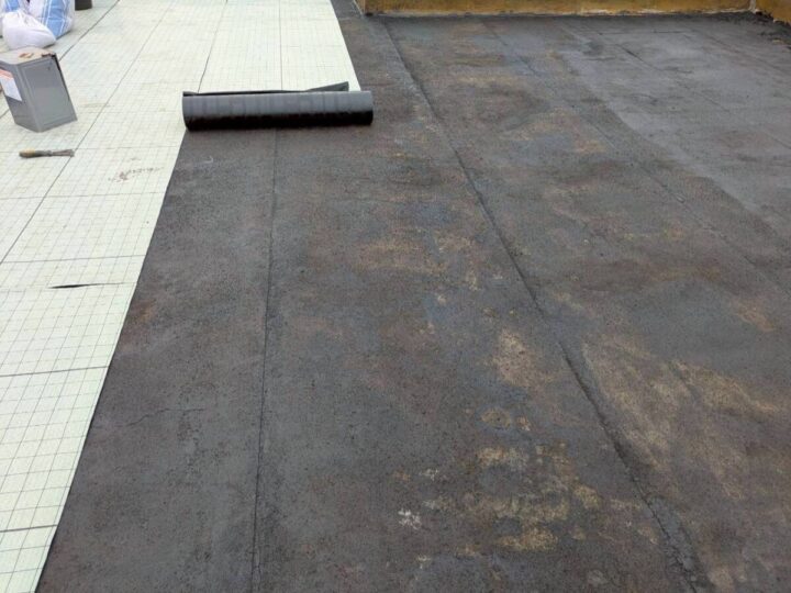【通気緩衝シート貼り】シートを張り付け通気層をつくり、新規防水層のふくれなどの不具合を防止します。