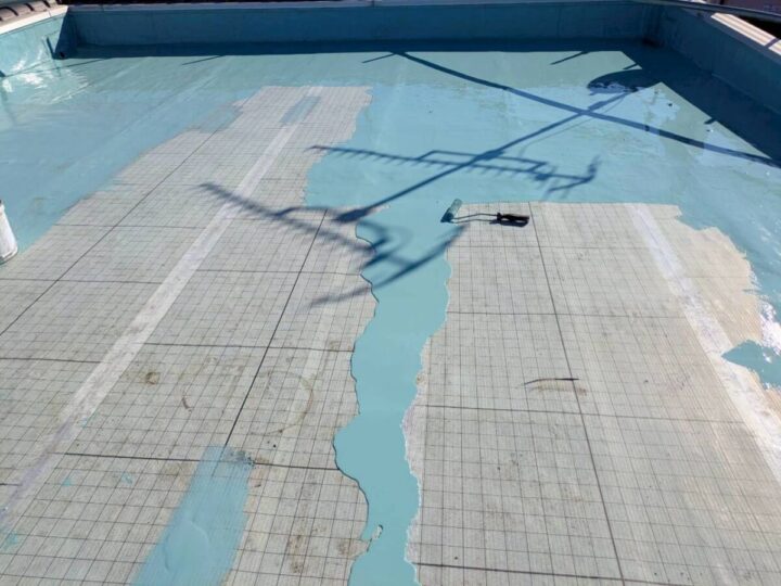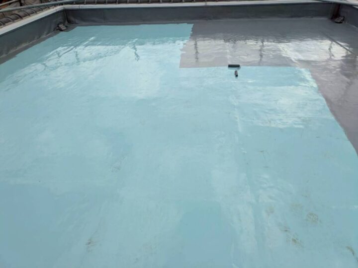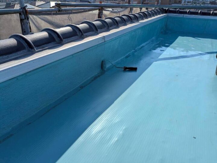【ウレタン塗膜流し込み1回目】ウレタン防水材を塗布します。