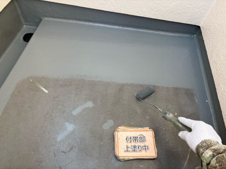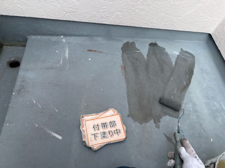 【プライマー塗布】既存防水層と新規防水層をがっちりと接着させます。