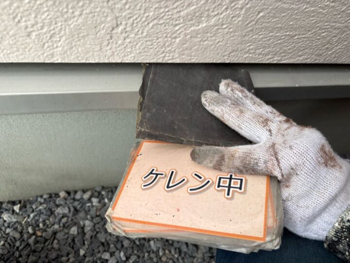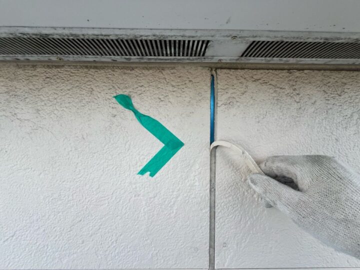 【撤去】経年により劣化したシーリング剤を撤去します。